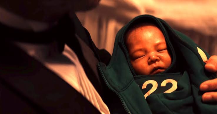 At this point in the game, Gi-hun is faced with a difficult choice: He can save himself and let an innocent child die — Kim Jun-hee's newborn baby — or he can save the baby and die in the fall from the tower. But Gi-hun is finally a man of sacrifice at this point. He has gone from selfless to selfless.